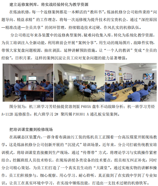 煉油機(jī)修分公司創(chuàng)新培訓(xùn)模式鍛造機(jī)修精兵