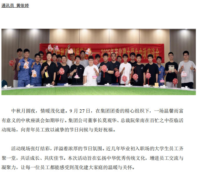 月圓中秋夜 情暖茂化建——2025 年集團(tuán)大學(xué)生中秋座談會(huì)圓滿(mǎn)舉行