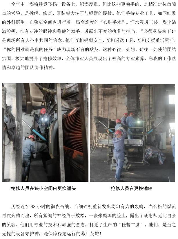 北海中科項目部輸儲煤裝置細(xì)碎機搶修攻堅戰(zhàn)