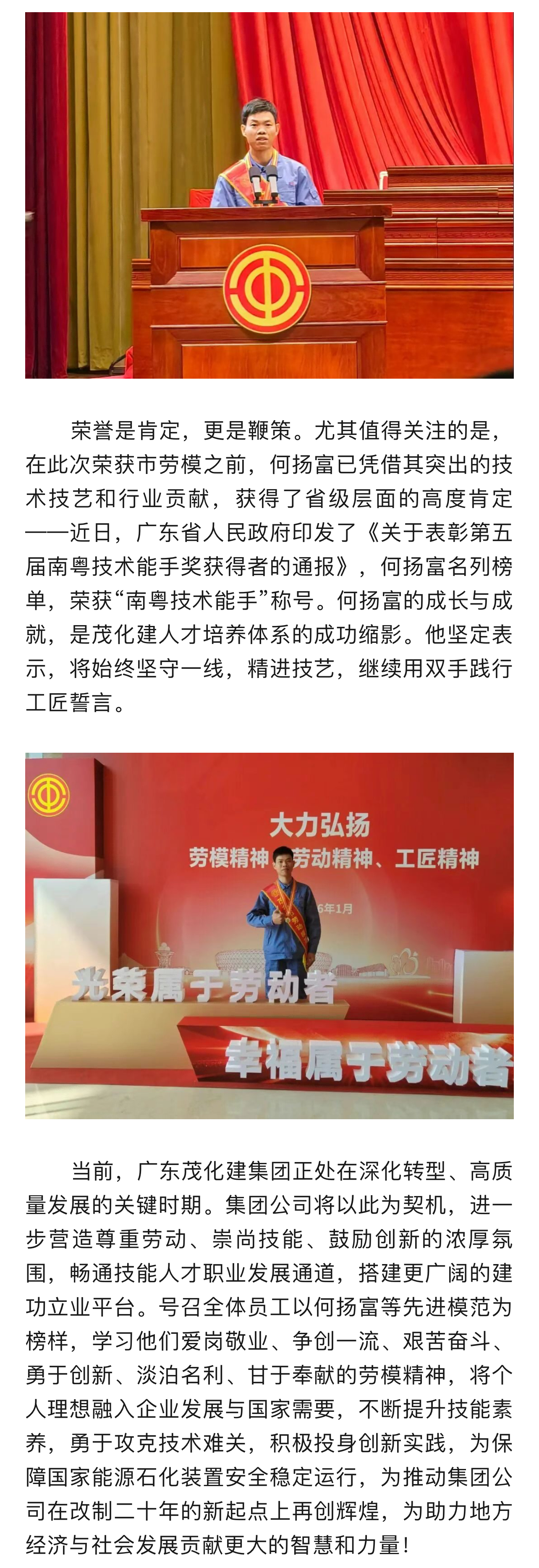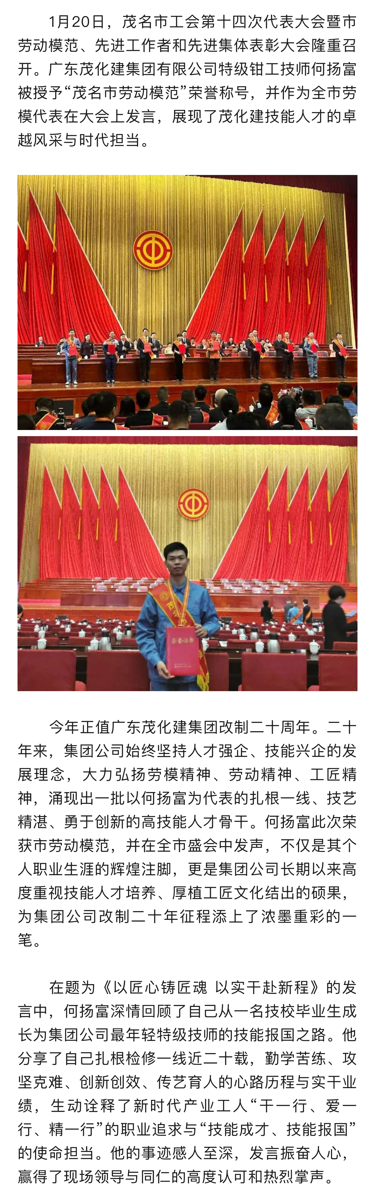 喜報!廣東茂化建集團(tuán)特級技師何揚富榮獲“茂名市勞動模范”榮譽稱號